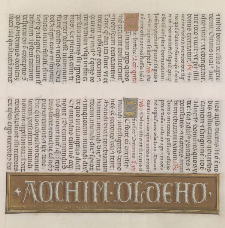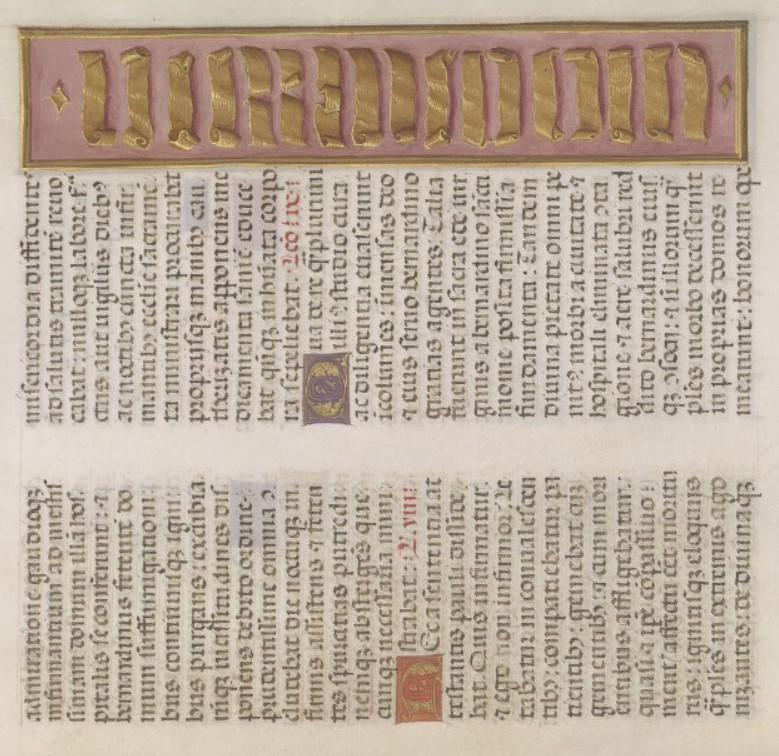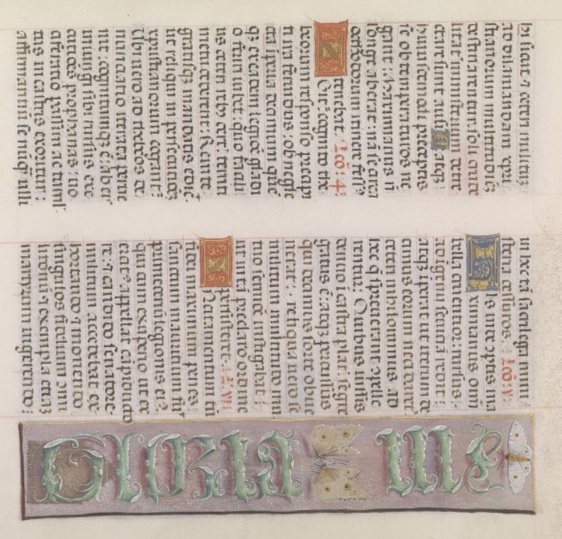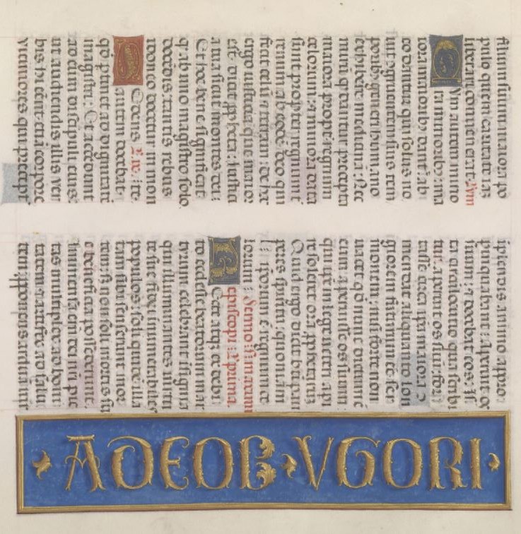 La plupart des légendes en bordure des grandes miniatures sont parfaitement lisibles. Ici, le mot EXCELSIS est déformé en EXVICVS de manière gratuite, pour le plaisir de la devinette.