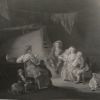 - le malheur : un curé, suivi par son bedeau, vient apprendre à une mère de famille le décès de son époux ; la brouette-jouet et le tambour relégués sous la table nous indiquent que le temps des jeux et de l’opulence est fini ;