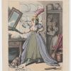 Entre les deux pendants, les accessoires de vanité (le collier de perles autour du cou, la montre, la bague, le flacon de parfum sur le guéridon) n’ont pas bougé, pas plus que le voile de gaze, ni le ruban et la fleur dans la chevelure, ni la position des doigts de la coquette : il faut comprendre que la robe de satin gris a été enlevée d’un coup, par l’intervention du démon cornu qui se glisse derrière la glace.