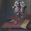 Ces incohérences confortent l’idée que Zurbaran a procédé par collage à partir de deux compositions déjà établies, ayant chacune leur cohérence interne. La fusion des deux demi-tables a donné l’idée des deux livres, et laissé au centre une place pour ce qui ne pouvait plus être le bouquet, trop volumineux : deux poires sont venues occuper cet espace. De la même manière, l’élargissement du champ a permis d’introduire un autre élément nouveau : le couple de colombes dans le coin inférieur droit.