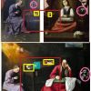 - les objets ne sont pas éclairés par la trouée angélique du coin supérieur gauche, mais par une forte lumière venant de la gauche.