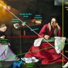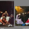 Le thème de la couture interrompue viendrait de la variante MET, tandis que le geste de la tête posée sur la main viendrait de l’autre variante.