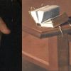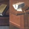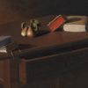 - même petite table portant un livre (en jaune), mis à part l’absence de tiroir ;