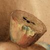 Non seulement Zurbaran a placé deux poires côte à côte, mais il a insisté sur un détail unique : leurs queues sont fusionnées, elle viennent d’être cueillies ensemble sur la même tige et déposées pile entre les livres de l’Ancien et du Nouveau Testament.