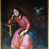 - sur la table, l’oeillet et le chardonneret (la Passion) ont été remplacées par des fleurettes bleues et des ciseaux (la Couture) ;