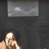 Il existe une autre famille de tableaux sur un thème similaire [5] : assise sur un coussin posé sur le sol, l’Enfant a cette fois interrompu sa lecture pour s’endormir, le coude appuyé sur une chaise. Une gloire d’anges matérialise son rêve. La présence de la petite table (au tiroir indifféremment fermé ou ouvert) et du bouquet lys / roses rattache étroitement la composition à celle du Metropolitan.