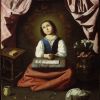 Zurbarán est revenu sur le même thème à la fin de sa vie, épuré cette fois de toute symbolique : l’Enfant a simplement planté son aiguille sur le coussin pour prier, le regard tourné vers le ciel.
