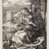 Nous avons vu plus haut que ce geste peut simplement signifier le sommeil ; mais depuis la célèbre gravure de Dürer (voir MELENCOLIA I ), il est compris universellement comme la posture de la Mélancolie. C’est cette ambivalence qui a permis le glissement entre la Vierge enfant endormie et la Vierge adulte plongée dans la tristesse.