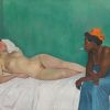 Il faut savoir que ce tableau mystérieux a pour point point de départ une gageure : les deux anglaises sont des amies de Lucy Hessel, la maîtresse de Vuillard, et lui ont proposé de peindre une version art déco de la toile énigmatique de Titien, lL’Amour sacré et l’amour profane.