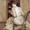 La même fille blonde apparaît dans ce tableau empli des classiques symboles galants hérités du XVIIème siècle : mule, rubans, lettre et surtout chat (voir Pauvre minet). Mais comme par un dernier geste de liberté, Vallotton a emprunté, pour coucher cette fille amoureuse, le lit XVIIème de sa future épouse, bien visible dans le tableau de l’année suivante.