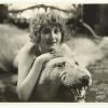 Ces clichés hollywoodiens font exactement l’inverse : ils censurent la chair nue mais exhibent autour d’elle tout un attirail de symboles agressifs. Les monstres à patte de lion de la cheminée, les dents du porte-bûches et celles de l’ours, les flammes et la fourrure, prennent en sandwich cette fille ambigüe, visage angélique et crinière de lion. Et la courbure de la grille suggère hypocritement un déhanché que, dans une situation analogue mais en France, une star de la Belle époque ne craignait pas d’exagérer :