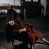 Modèle assis près de la cheminée