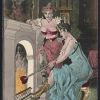 Chez les filles du peuple, le luxe de la cheminée est remplacé par le confort discret de la chaufferette, qui permettait également des effets de chevilles affriolants. C’est encore en relaçant son bas que la grande soeur révèle le pot aux roses, au chat comme au spectateur.