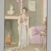 La cheminée n’évoque qu’un plaisir bien innocent : celui de se chauffer les pieds tandis que les autres se gèlent. La femme de qualité, dans l’Hiver, prend soin de se protéger le visage avec un pare-feu à main.