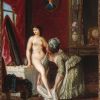 En revanche, fidèle à sa réputation (voir 1 Les objets d’un scandale), Gervex exploite la composante scandaleuse du thème avec cette rousse flamboyante qui exhibe sa cambrure en s’effeuillant devant la glace, entre des bougies qui ne demandent qu’à s’enflammer.